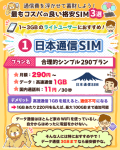 ライトユーザーにおすすめな日本通信SIMのプランは「合理的シンプル290プラン」です。