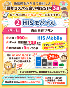 6GB~7GBのデータを使うユーザーにおすすめ「HISモバイル」