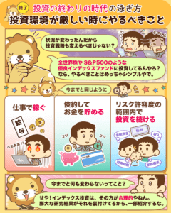 - 今までと同じように、リスク許容度の範囲内で投資を続ける。
