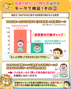 - 実際にS&P500連動ファンドを保有していた投資家の平均リターンは3.69%。