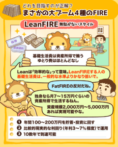 FIREの4つの種類とそれぞれの特徴は、以下の通りです。