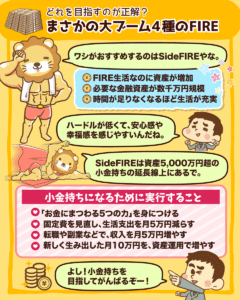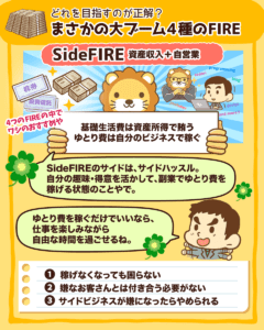 FIREの4スタイルの中では、SideFIREがおすすめです。
