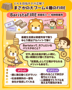 一方で自分でビジネスをしないBaristaFIREは、爆発的に収入や資産を増やすのは不可能です。