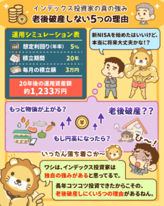 今回は、インデックス投資家が老後破産しない5つの理由について解説しました。