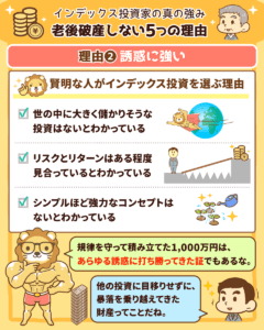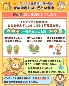 今回紹介した老後破綻しない5つの理由は、インデックス投資家の人としての強みでもあります。