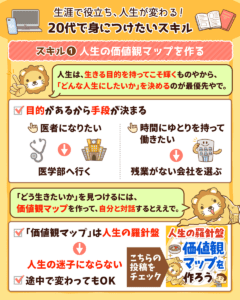 スキルを身につける前に、最優先すべきは価値観マップの作成です。