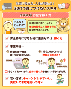 そのうえで、経済的自由を目指すための基礎スキルや今後の人生が楽になるようなスキルを身につける方がおすすめです。