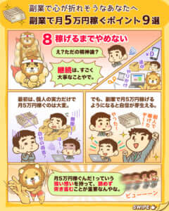 この記事では、副業で稼ぎたいけれど挫折しそうな人に向けて、月5万円稼ぐための9つのポイントを解説します。