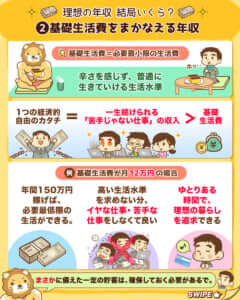 基礎生活費を賄える理想の年収は、ココを基準に決めていきます。
