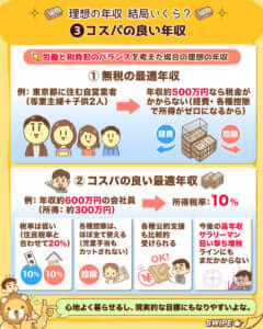 今回の記事では、「理想の年収、結局いくら?」というテーマで、以下の3パターンについて解説しました。