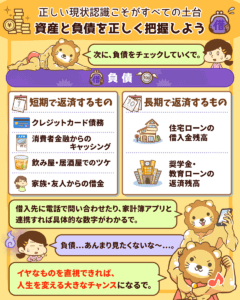 先ほどの質問の答えは、両方とも「現状の資産と負債を正しく把握すること」になります。