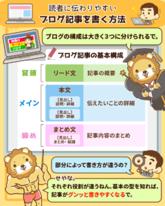 ここからは「ブログ記事の投稿」に関して、以下の3つのことを解説していきます。