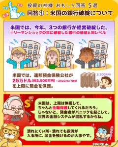 一方アメリカでは、連邦預金保険公社という機関によって、25万ドル(約3,400万円)を上限に預金が保護されるそうです。