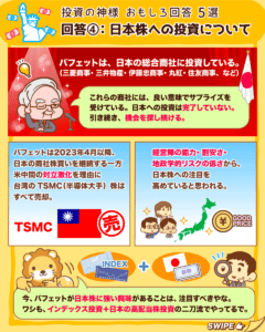 地政学リスクの高まりを示唆しつつ、「台湾よりも日本への投資に満足している」というコメントを残しています。