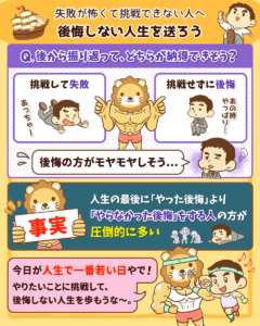 適正なリスクを取りつつ、どんどんチャレンジして、後悔しない人生にしていきましょう。