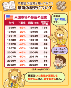 先ほどの暴落の歴史を見て分かる通り、暴落は定期的に必ず訪れます。