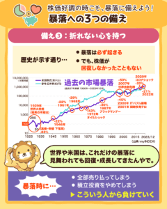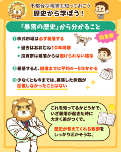 そして、これら暴落の歴史から学ぶべきことは3つあります。