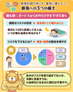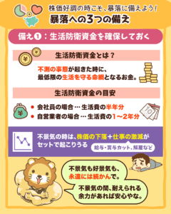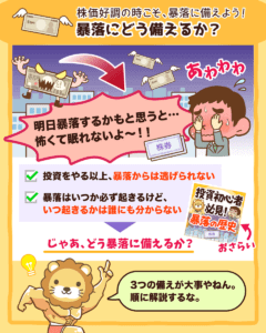リベ大は、いつか必ず起きる暴落に対して、以下の3つのことを対策すべきだと考えています。