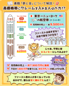 全ての座席をエコノミークラスにすることで座席数を351席に増やせるにもかかわらず、これだけ売上が減るワケです。