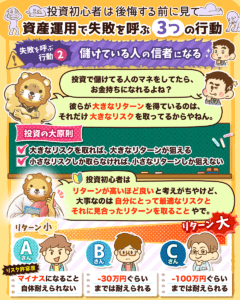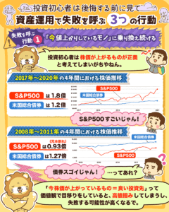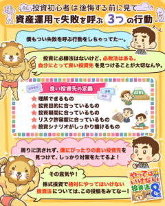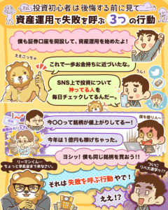 今回は資産運用を始めた初心者が、ついやってしまう「失敗を呼ぶ3つの行動」を解説しました。