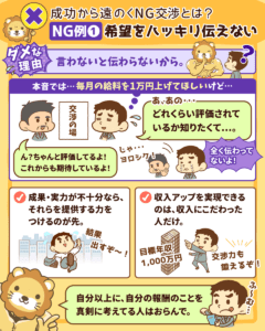 交渉でやってはいけない理由は、言わなければ自分の希望が伝わらないからです。