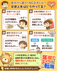 今回の記事では「やってはいけない年収アップの交渉法5選」について解説しました。