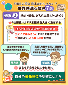 - 地方と都会のどちらに住んでもFIREは達成できる。
