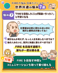 - 世界共通!FIREの悩み7選と対応策