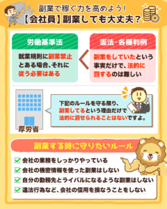 つまり上記のルールを守っている限り、皆さんが「副業をやっている」という理由だけで、法的に罰せられることはありません。