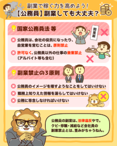 → 自分の勤務先のライバルになるような副業はダメ。