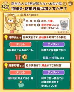 - ② 保険・持株会・財形貯蓄は全て加入すべきか?