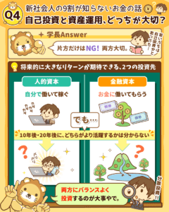 どちらかだけではリスクが大きいので、自己投資も資産運用もどちらも大切です。