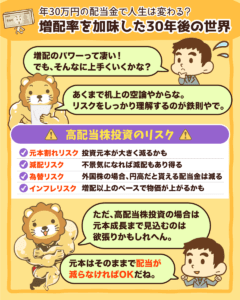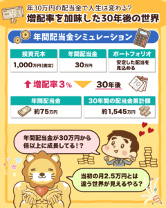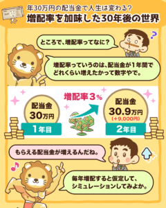 年間30万円の配当金で人生は変わるのか?増配率を加味した30年後の世界
