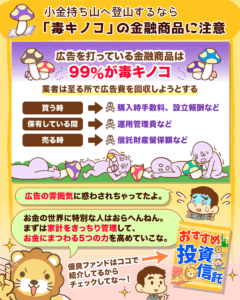 → 【99%は毒キノコ?】広告を打ってる金融商品への投資はおすすめしません