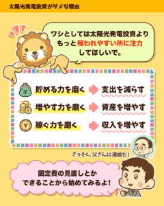 太陽光発電投資は報われにくい投資やねん。