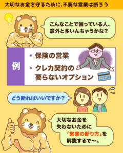 大事なお金を守るためには、要らないモノはしっかり断らなアカンで^^