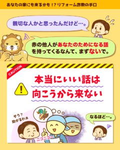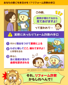 近年、訪問営業によるリフォーム詐欺が増えているらしいな。