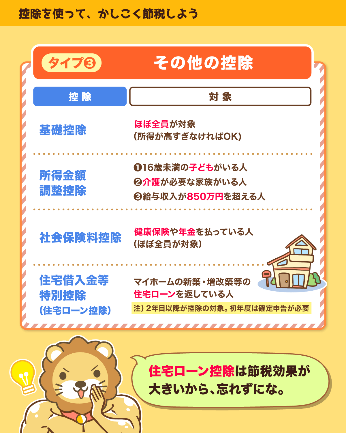 けど、全員に当てはまるような控除はほとんどないねん。