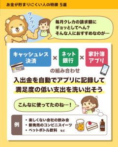 このページでは、支出のバランスをコントロールする力「貯める力(支出を減らす力)」に関する図解を紹介してるで。