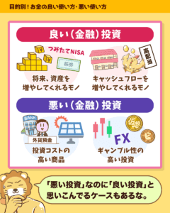 その際に、良い投資と勘違いして悪い投資をしたり、投資と思って浪費をしたりしないように気をつけましょう。