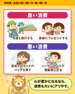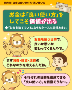 同じ使い方でも、目的が浪費・消費・投資のどれなのかによって、良いか悪いかが変わってきます。