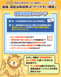 たしかに高配当株投資は、株式投資の中では相対的に低リスクの投資手法と言えます。