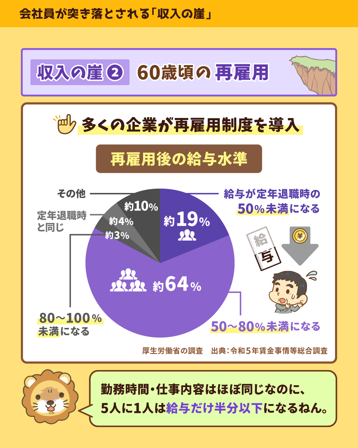 - ②60歳頃の「再雇用」…年収2~5割カット