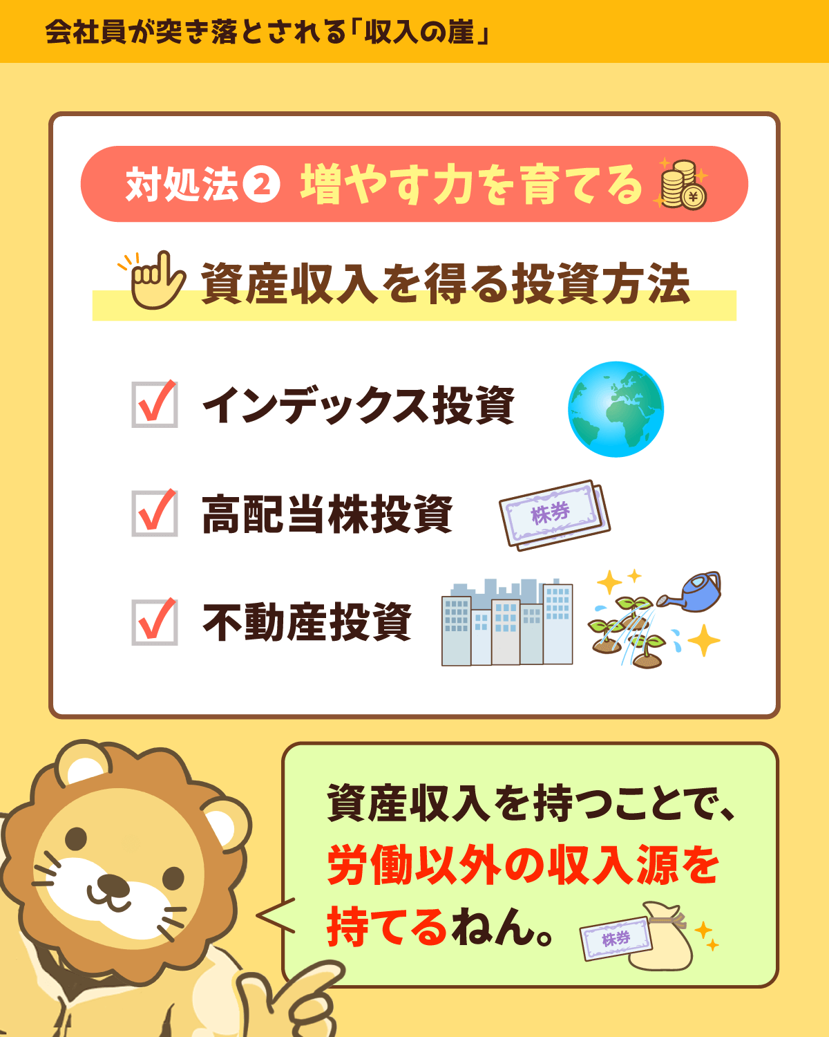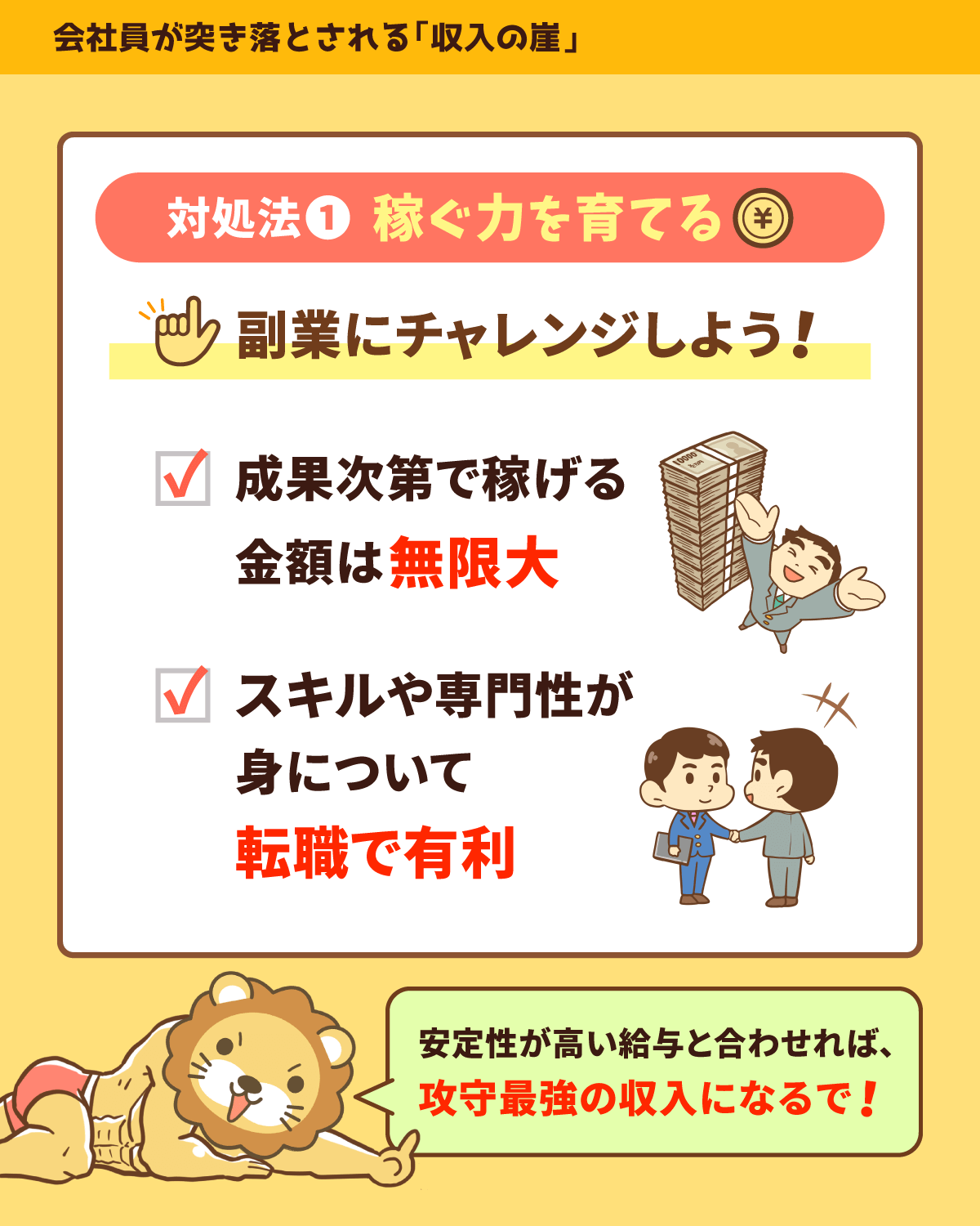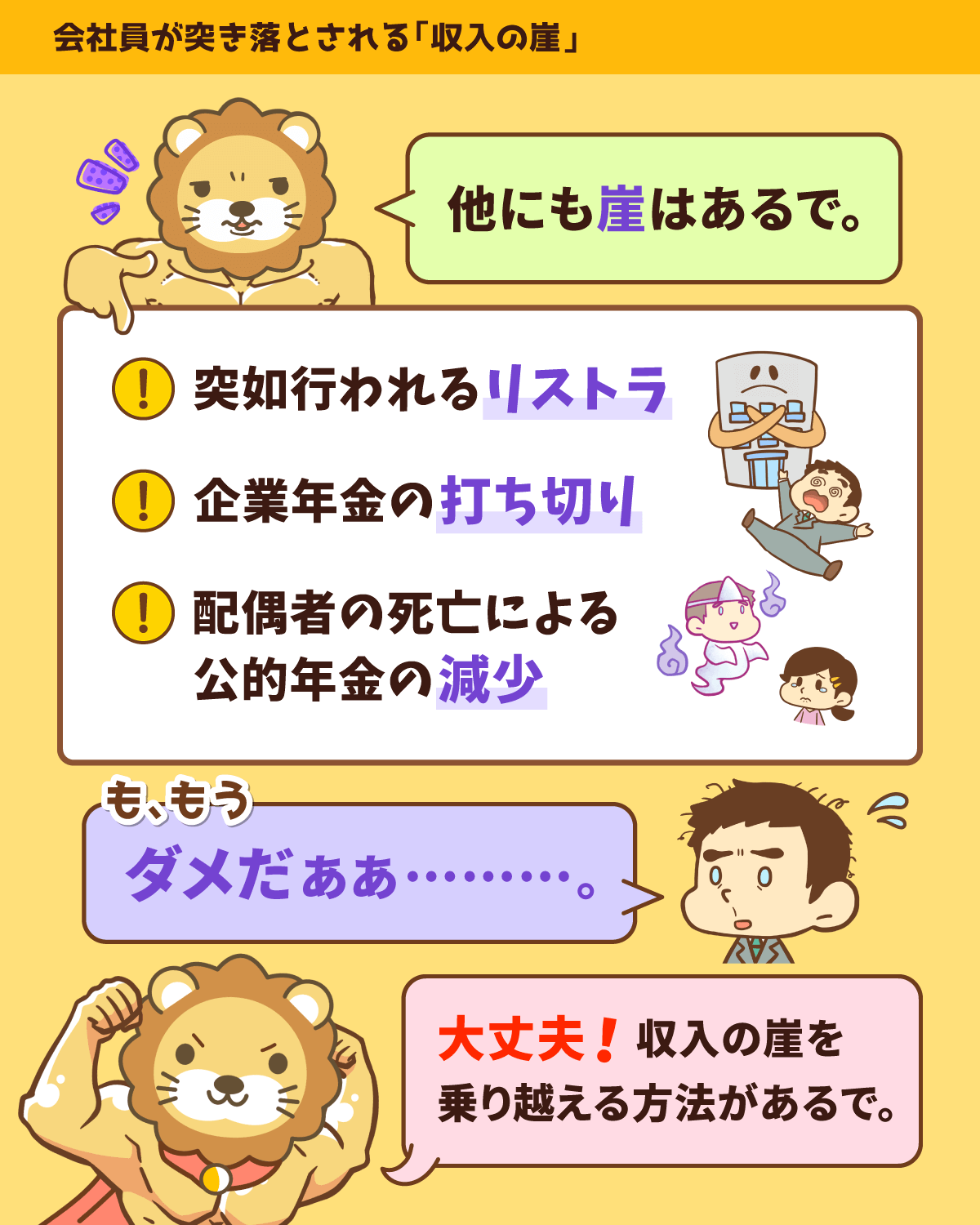 そこで今からできる会社員の「収入の崖」の対処法を理解した上で、今日から行動し始めましょう。