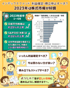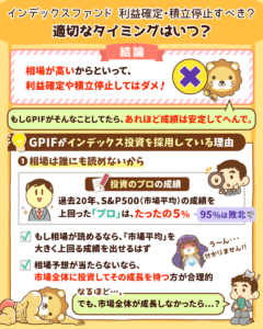 後半パートでは、インデックスファンドの「利益確定」と「積立停止」のタイミングについて解説します。