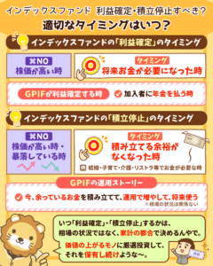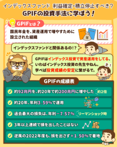 これを聞いて、インデックスファンドの利益確定や積立停止の話と、GPIFの話が結びつかない人も多いでしょう。
