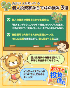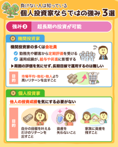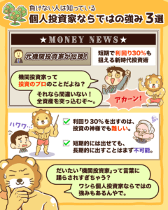 そして、皆さんが資産形成するうえで、「個人投資家ならではの戦い方」を知ることは、非常に重要です。