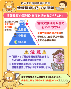 覚えておいてほしいのは、上の層にある鮮度や質の良い情報を入手するには、情報をただ待つのではなく自らが上の層に進む必要があることです。
