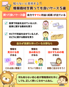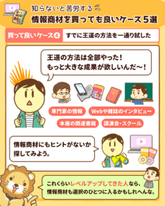 そこで続いては、多くの情報商材は価値のないものという前提の上、情報商材を買っても良いケース5選について解説していきます。