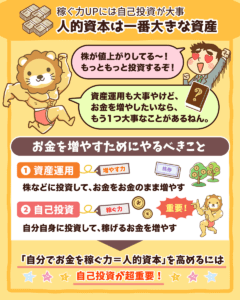 今回の記事における自己投資とは「人的資本を大きくする = 収入をアップさせる」ものです。